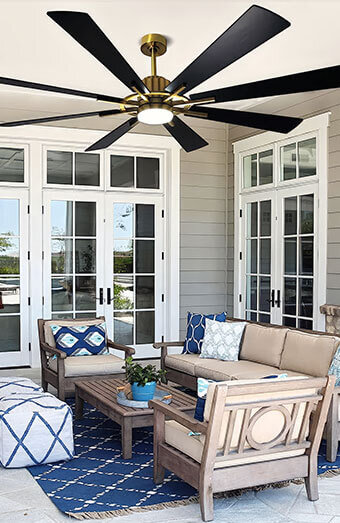 Expert mounting of weather-rated ceiling fans in alfresco areas, patios, and verandas, designed to withstand humidity and outdoor conditions.
